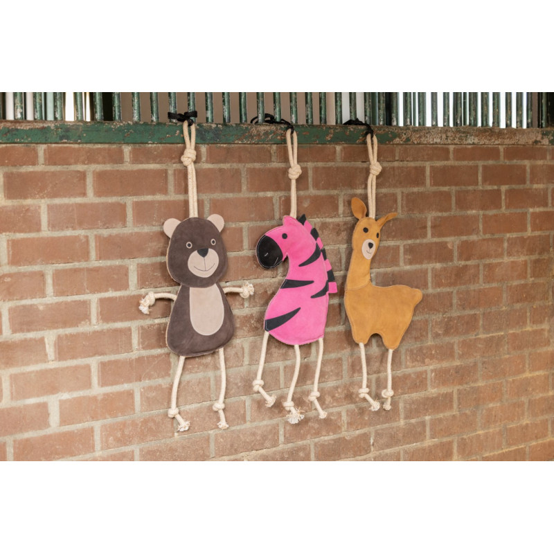 Jouet pour chevaux "Kerbl" garni de fibres coco et recouvert de daim.