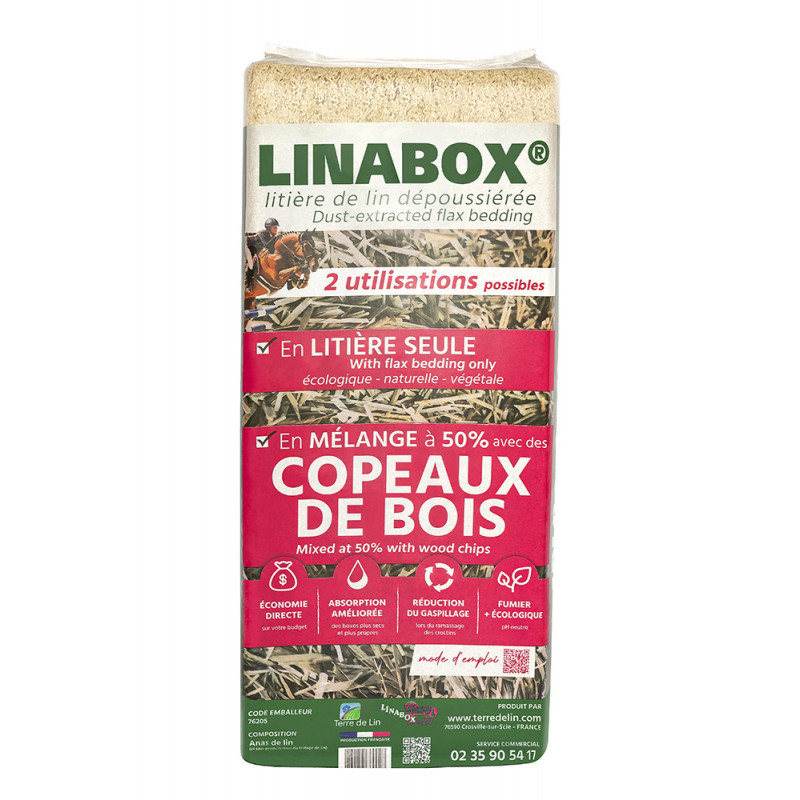 - En litière seule : 100 % Litière de lin LINABOX® - ECONOMIQUE ET EFFICACE (voir mode d’emploi ci-dessous).