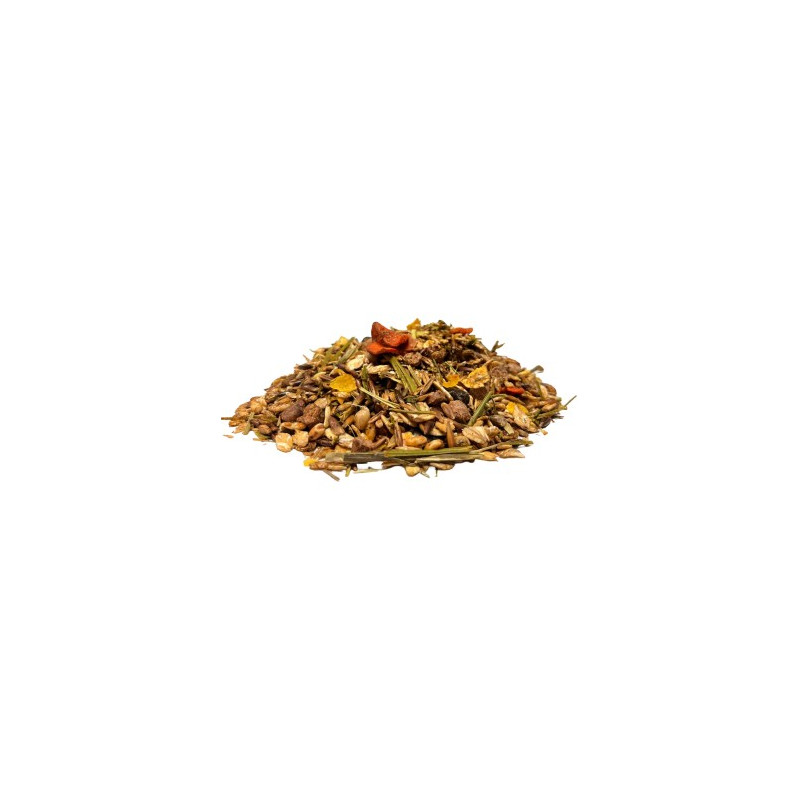 Flocons d'orge, Son fin de blé, Avoine noire, Flocons de maïs, Luzerne brin déshydratée, Orge soufflée, Graine de soja cuite, Huile végétale de colza, Mélasse de canne, Flocon de carotte, Phosphate bicalcique, Carbonate de calcium, Chlorure de sodium, Remoulage de blé, Phosphate monocalcique, Oxyde de magnésium, Huile de lin, Sulfate de sodium.